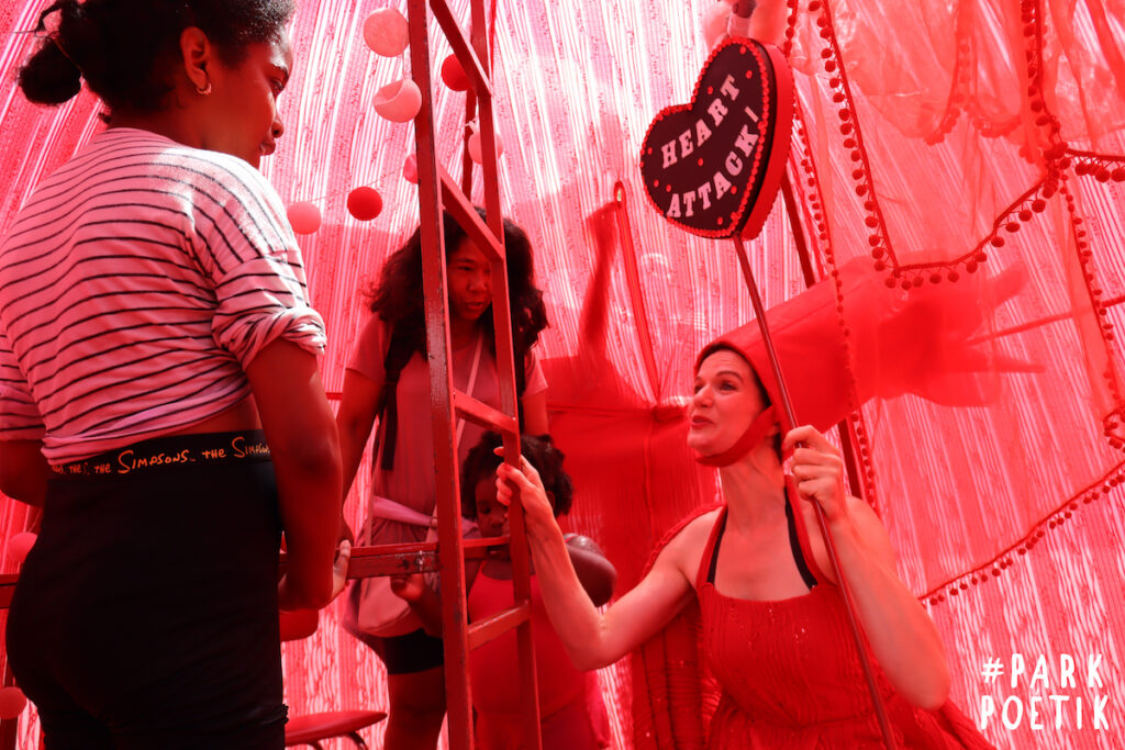 Als boodschapper van de liefde stuur de dame in de enorme rok haar handlangers de Halve Harten op het publiek af. Ieder afzonderlijk kiezen ze iemand uit en leggen diegene een openhartige vraag voor: Waar stroom jouw hart van over? Of: Wat is jouw hartenwens?